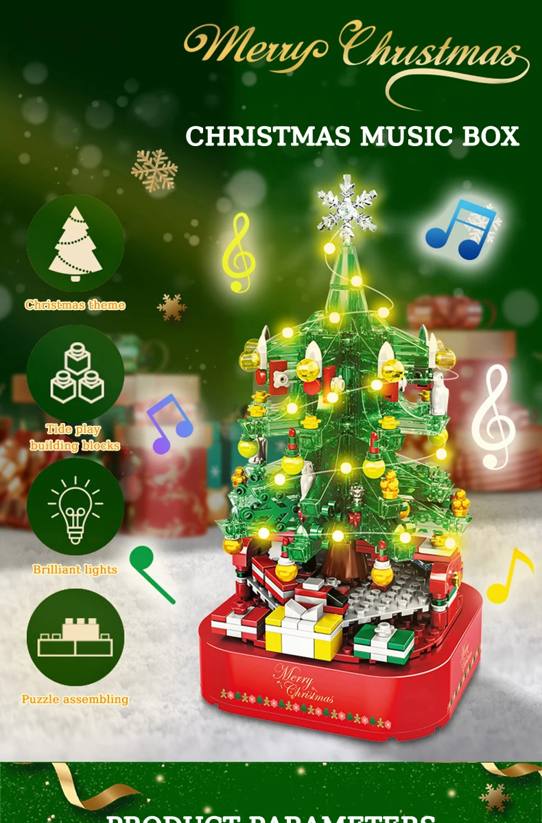 Using 486 Pieces building blocks to build a colorful Christmas Tree can be full of challenges and fun for kids, even parents. DIY Christmas Tree music box, can make people divert attention by manual labor, relieve stress and relax themselves. This DIY toy will bring endless fun in this Christmas Holiday!