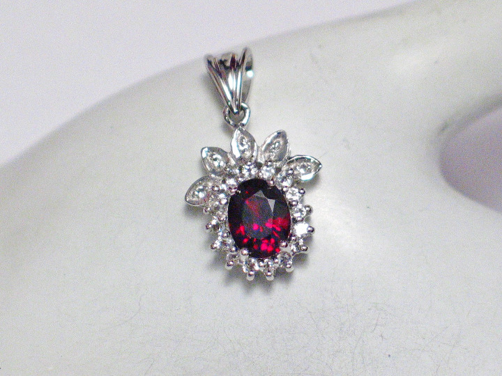Up for the offering is a 14k white gold pendant. Beautiful, a rich red to the spessartite garnet gemstone, oval cut, accented with a halo of white topaz gemstones, sturdy setting, solid, not hollow construction. Garnet is January's Birthstone and is the 2nd & 19th Traditional Wedding anniversary gift stone. This is actually in beautiful like new condition, would make a great gift. Designer/Manufacturer TG, Overall length is 21.79 mm. This item is constructed of karat gold.