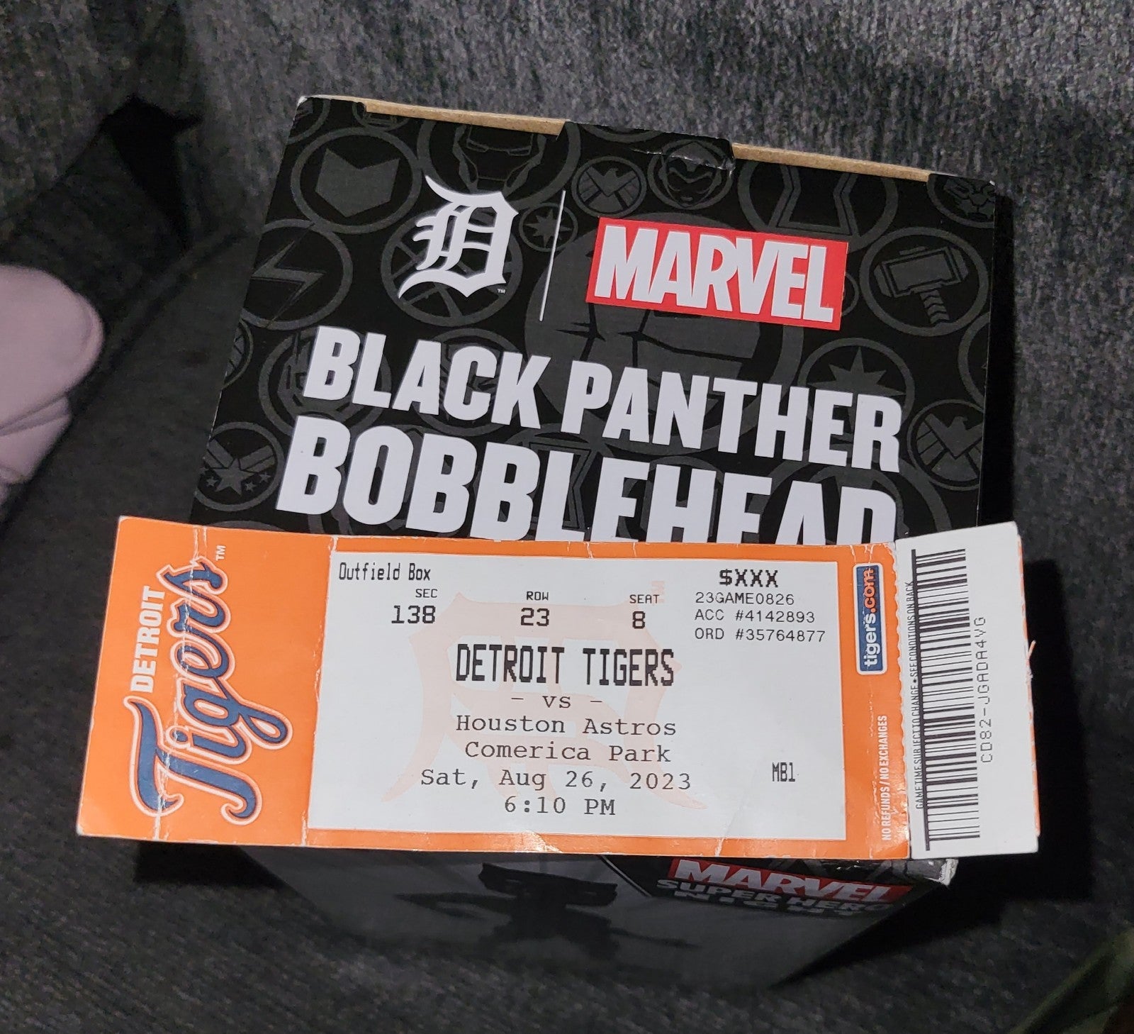 This Collectable Bobble Head was given out at the Detroit Tigers Game on Saturday Aug 26th 2023. It also come with the Seat Ticket. The Bobble Head has never been opened but it doesn't come with tags because it wasn't bought. It was given out as a Gift when we entered the Areana.